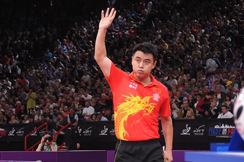 王皓、安堵の表情で声援に応える王皓(中国) -8,9,6,-12,8,2 閻安(中国)