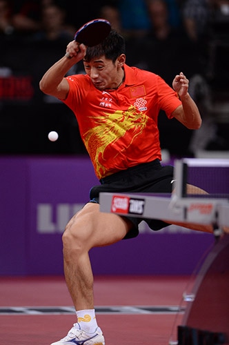 男子シングルス準決勝の第1試合が行われた。男子シングルスはベスト4を中国が独占。ここからの3試合はすべて同士打ちとなる。最初に行われたのは世界ランキング1位で第1シードの許昕前回チャンピオンの張継科の戦い。このライバル対決を制したのは張継科。2連覇まであと1歩に近づいた。
