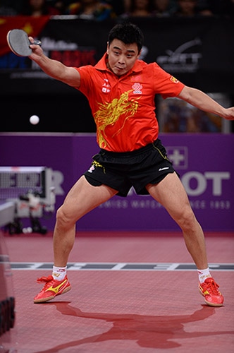 バック対バックの高速ラリーから始まった第4ゲームは張継科の連続ミスと王皓の3球目攻撃で4-0。王皓のエッジイン、張継科のレシーブミスなどで王皓が7-2とリードを広げる。張継科がバックハンドを決めて2点連取したところで、このゲームを落としたくない王皓が早めのタイムアウト。しかし、張継科はさらに2点連続ポイントで1点差に迫る。ここで王皓は気合いの回り込みシュートドライブを決めて8-6と再びリード。10-7で王皓がマッチポイントを握るが、守りに入った王皓に対して張継科は強気の攻めで10-10に追いつく。しかし、王皓再び強気のチキータレシーブで得点。張継科も負けじとチキータを決めて、11-11。固くなったためか両者のミスが続き、12-12。バック対バックの高速ラリーを張継科が決めてゲームポイントですぐさまタイムアウト。次のポイントを張継科が迷わず振ったフォアハンドで決めて14-12。2連覇に王手をかけた。