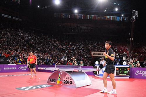 パリ、ベルシー体育館で行われる最後の試合の模様をお届けする。試合前日から9日間にわたってお届けしてきたこの速報も、これで最後になる。男子シングルスの決勝は2011年ロッテルダム大会チャンピオンの張継科と2009年横浜大会チャンピオンの王皓の対決。ロッテルダム大会、昨年のロンドンオリンピックと決勝を争ってきた2人がやはりここパリでも決勝に勝ち上がってきた。2度の頂上決戦はともに張継科に軍配が挙がったが、3度目も勝利の女神は張継科に微笑んだ。