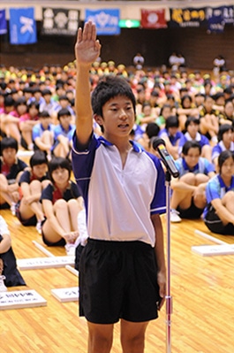 初日の17日は開会式が行われた。選手たちが入場し昨年の優勝校、男子は青森山田中、女子は四天王寺羽曳丘中による優勝旗の返還、大会役員の挨拶などが行われると、長森中の近藤健吾主将が元気よく選手宣誓し、明日からの熱戦のスタートが宣言された。また、武蔵野中(女子)が30年連続出場、四天王寺羽曳丘中(女子)が10年連続出場の表彰を受けた。