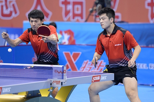 樊振東(右)/周雨はハイレベルなレシーブ技術を披露