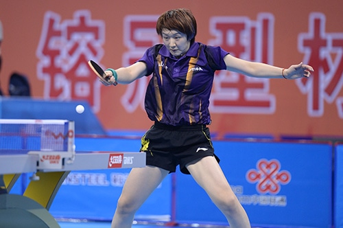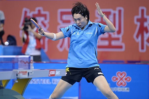 李暁霞は回転量の多い両ハンドドライブでチャンスメーク