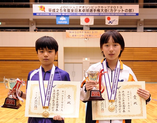 3位にはパワーが持ち味の笹尾(横浜隼人中)と、全中優勝の早田を完封した梅村(ミキハウスJSC)が入賞した。