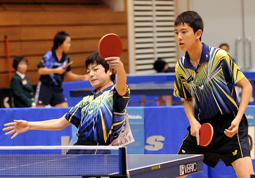 早めに仕掛けて得点したい青森山田中ペアと、しっかり動いてラリーにしたい愛工大附属中ペアが対照的な戦いとなったが、蛭田の前陣ブロックと五十嵐のパワードライブで先手を取った青森山田中ペアの攻めが上回った。