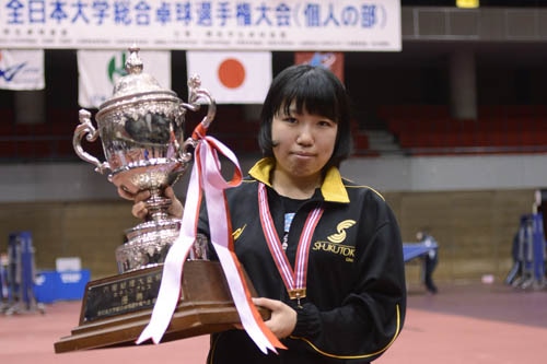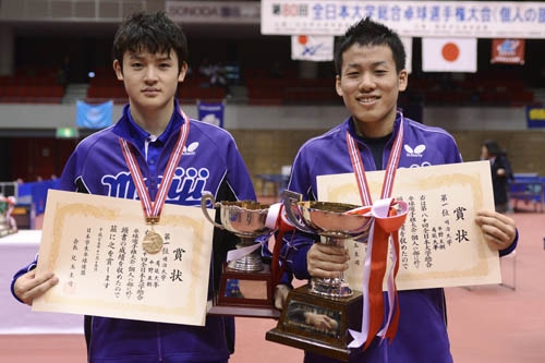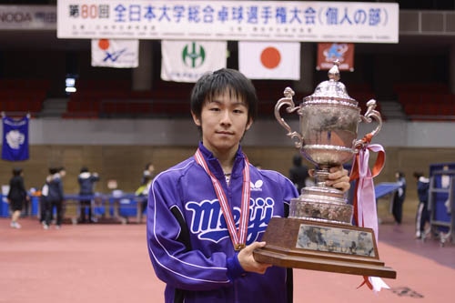 大学生の日本一を決める全日本大学総合選手権大会(個人の部)がベイコム総合体育館(尼崎)で開催された。シングルスとダブルスが行われ、男子シングルスは丹羽孝希(明治大)が初優勝。女子シングルスは丹羽美里(淑徳大)が2連覇で全日学史上初のきょうだいVを飾った。男子ダブルスは平野・有延(明治大)が制し、明治が2冠。女子ダブルスは北岡・松村(中央大)の4年生ペアが念願の初優勝をはたした。