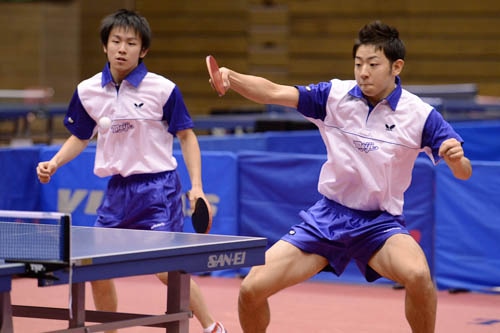 決勝は声を出してガッツを見せた平野・有延が第1ゲームの競り合いを物にして先制。ゲームを取り合うクロスゲームになるが、第5ゲームまでミスを怖れずに先手を取って攻め続けた平野・有延が、練習では負けていたという丹羽・町を破りうれしい初優勝を手にした。3位には大野・大坂(中央大)と松生・藤木(中央大)が入った。