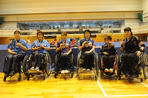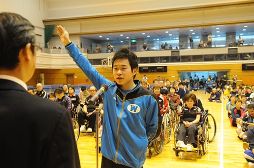 岩渕幸洋による選手宣誓で大会がスタート車いすの部では、男子クラス1-2で皆見信博が連覇。男子クラス3は吉田信一が3連覇を飾った。男子クラス4では前回優勝の宇津木孝章が準々決勝で姿を消し、中出将男が王座に返り咲き。男子クラス5は岡紀彦が8連覇を遂げた。