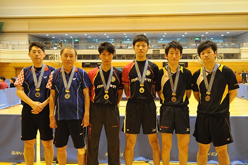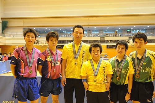 ダブルス男子クラス1−5入賞者。左から土井健太郎、土井康太郎、岡、吉田、鍋坂、中出