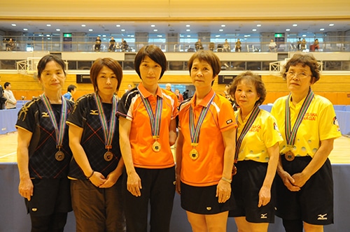 ダブルス女子クラス1−5入賞者。左から吉海、藤森、茶田、藤原、川又、小田木
