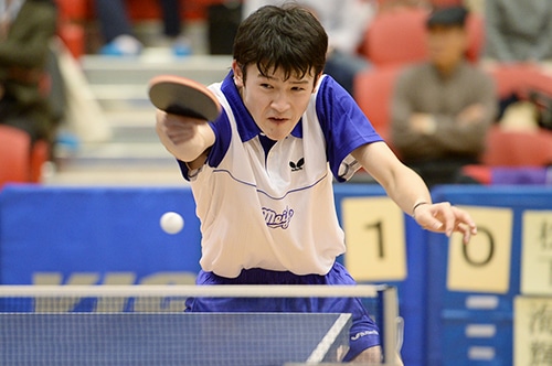 対する有延は平野に続いて準決勝で大学の先輩、松下(明治大)と対戦。レシーブから積極的にチキータを使い、臆することなく攻め続けて勝利を収めた。