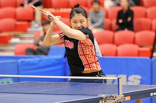 その中で優勝した鈴木は、打点の速さと安定したコース取りで強豪を連破した。1回戦の平野(東京富士大)との対戦ではフルゲームまでもつれたが、最後はインターハイ女王の意地を見せて勝利を収めた。その後は準々決勝で楊婷(淑徳大)、準決勝で劉莉莎、と強力なドライブを打つ留学生を速い打点のドライブで連破。リードされる展開も多かったが、「全日学での反省点を改善して大会に臨んだ」という言葉に象徴されるように一つひとつのプレーを確かめるような丁寧な試合運びで、ゲームの中で修正を図る姿が印象に残った。