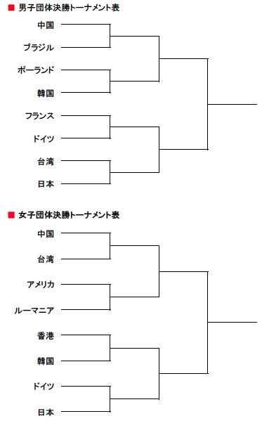 男女団体の決勝トーナメントの組み合わせは上記の通り。