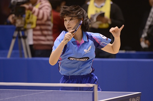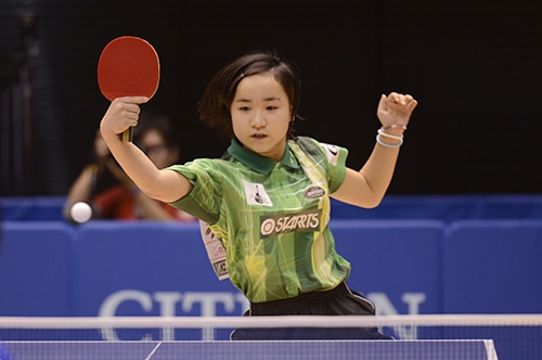 伊藤と同じ中学1年生の平野美宇(JOCエリートアカデミー)は芝田沙季(四天王寺高)に3対1で勝利。芝田の気迫に押される場面もあったが、落ち着いたプレーでベスト16進出を決めた。