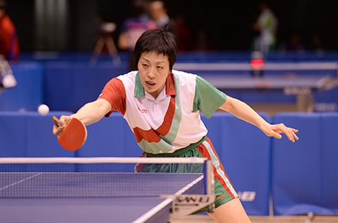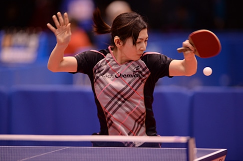女子シングルス1回戦が始まった。1回戦には昨年7月に行われた聴覚障害者のオリンピック、デフリンピックで女子シングルス金メダルを獲得した上田萌(日立化成)やジュニア女子シングルスでも勝ち進んでいる平野美宇(JOCエリートアカデミー)らが登場した。