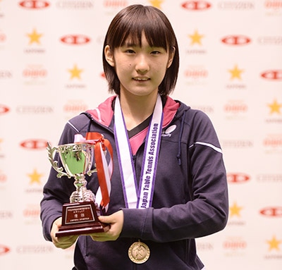 中学2年生での優勝は平成18年度の石川佳純以来7年ぶりの快挙。