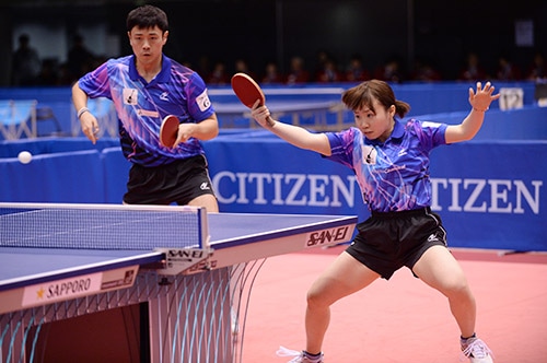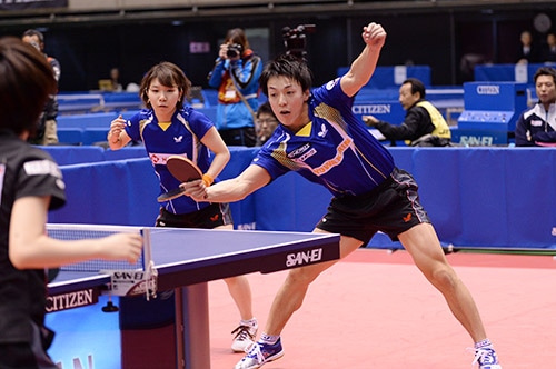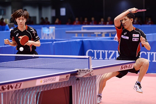混合ダブルスの決勝は張・森薗(東京アート・日立化成)と吉村・石川(愛知工業大・全農)という組み合わせとなった。吉村・石川は昨年に続き2度目の決勝進出。対する張・森薗は安定感のあるペアで危なげなく決勝まで勝ち進んだ。決勝は安定感で勝る張・森薗が、攻撃力のある吉村・石川を破って初優勝を決めた。