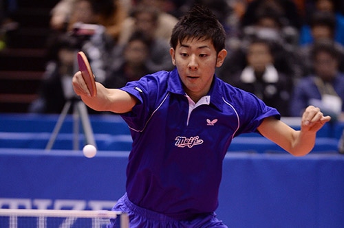 水谷はレシーブ、3球目から厳しく攻めて後輩の坪井をストレートで退けた。坪井も随所で鋭い両ハンドドライブを披露したが、パワー、スピードともに充実した水谷には及ばなかった。