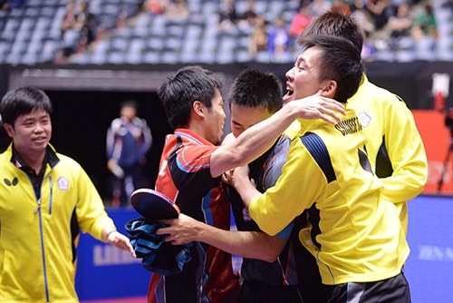 JA全農世界卓球東京2014東京大会(4月28日~5月5日)5日目の5月2日は決勝トーナメントの準々決勝6試合が行われる。13時から行われた男子団体の準々決勝で、予選グループでも戦った韓国と中華台北が再戦。中華台北が大熱戦の末に予選リーグのリベンジを果たし、団体戦で初のベスト4入りを果たした。