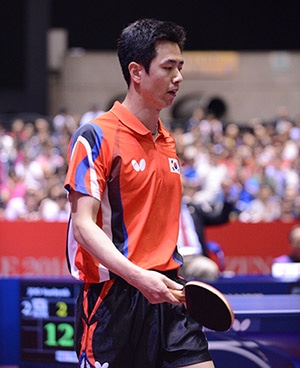 グループリーグの再戦となった男子準々決勝の韓国対中華台北。両者オーダーをいじらず、前回とまったく同じオーダーとなった。トップは朱世爀対陳建安。前回は朱世爀がストレートで勝っているが、ここでは陳建安がアグレッシブに朱世爀のカットを1発で決めに行く戦術で優勢に。陳建安のスピードボールにも徐々に対応してきた朱世爀が、じっくり守って窮地をしのぎ、勝負は第5ゲームへ。攻守ともに集中力を切らさずにプレーした朱世爀が陳建安の猛攻をしのいで先取点を挙げた。