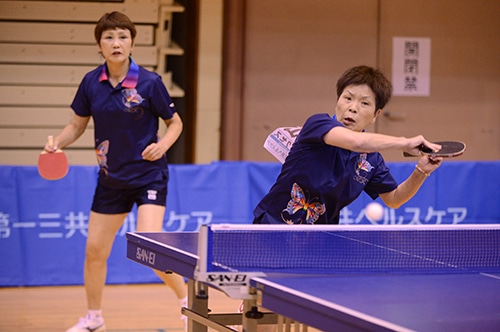 ダブルスA(60~109歳):藤原佳子・矢島真樹子(東京・FLEX/ワイワイ卓球) ※写真(上)