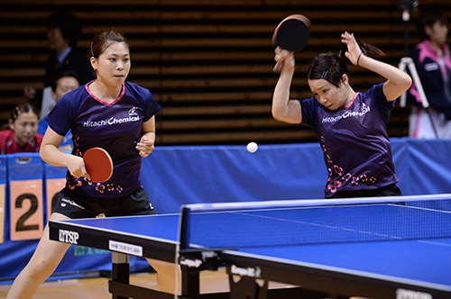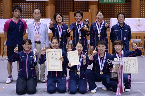女子は、実力が上位チームの力が拮抗しているため混戦が予想されたが、準決勝、決勝と3対2の競り合いをものにした日立化成が初優勝した。日立化成は新人の松澤がエースとして起用され、その期待を上回る活躍を見せた。松澤は準決勝で若宮(日本生命)、決勝で高(十六銀行)と相手チームのエースに勝った。松澤の加入により、森薗をラストに置くオーダーが組めるようになったことが大きく、その森薗は準決勝、決勝のラストで勝利した。 「日立化成としては団体戦でとっていないタイトルがこの実業団でした。今大会でそのタイトルをとることができてうれしく思っています。やはり、松澤が入ってくれたことが大きく、いろいろなオーダーを組み立てられるようになりました。日本生命さんとの試合が鍵になると思っていましたが、ラストで森薗がよく勝ってくれました」と内山監督。 2位には十六銀行が入った。準決勝のサンリツ戦はもつれると予想されたが、終わってみれば3対0とストレートで快勝。カットの根本、その根本と大森のカットダブルスの活躍が光った。3位には日本生命とサンリツが入った。