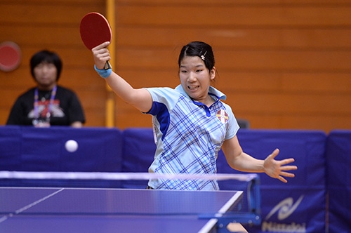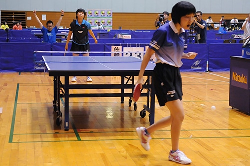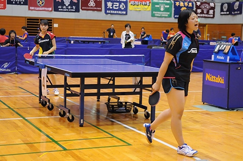 女子シングルスでの連覇を狙う阿部は4回戦で田口(正智深谷)と対戦。序盤はバック面での変化をつけた攻撃リードしたが、中盤以降は攻撃のリズムをつかんだ田口にラリーの主導権を握られ、2対3で敗れた。