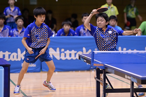 野田学園は今泉(左)・加藤の1年生ダブルスも活躍