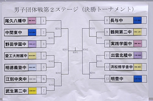 8月21~24日、高岡市竹平記念体育館(富山)で第47回全国中学校大会が開催されている。大会2日目は男女団体の第1ステージ(予選ブロックリーグ)が行われ、各ブロックの1位となった13チームが第2ステージ(決勝トーナメント)進出を決めた。男子団体の第1ステージでは、王者・愛工大附属など、昨年のベスト4が順当に勝ち上がった。