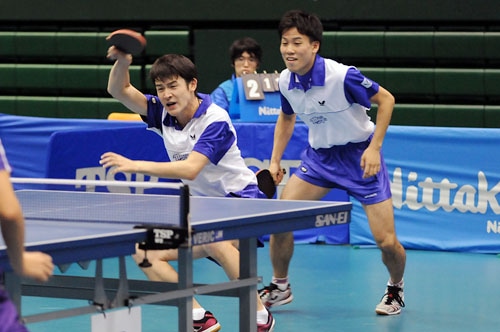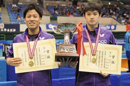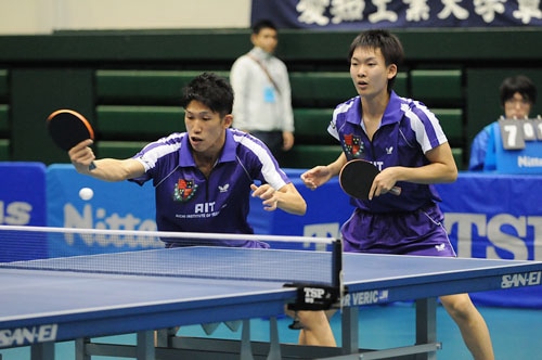 男子ダブルスは昨年度優勝ペアで第1シードの平野・有延(明治大)が高い攻撃力で決勝に進出。吉村・藤村(愛知工業大)は町・森薗(明治大)、大野・大坂(中央大)と関東勢を連破して決勝へ。