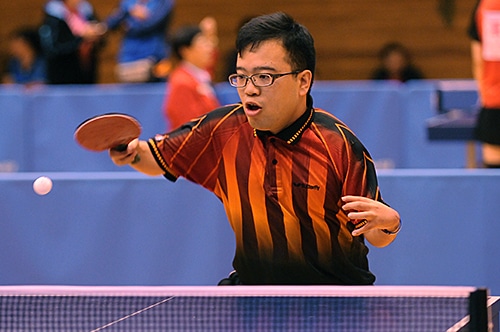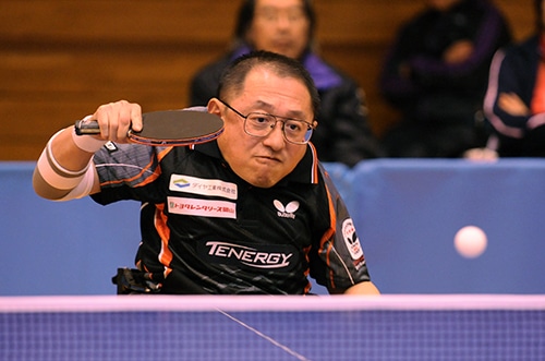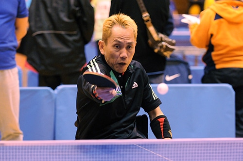 女子クラス5優勝の別所 立位の部では、男子クラス6で坂井淳記が5連覇。ミスの少ないプレーで1ゲームも落とさず完全優勝を果たした。男子クラス7を制したのは八木克勝。精度の高いフォアハンドドライブと気迫あふれるプレーで、昨年王者の井上を決勝で下す。男子クラス8は武田宜久が優勝し、昨年に続いて連覇達成。スマッシュの精度の高さに加え、今大会では裏面打法にも進境を見せた。強豪ひしめく男子クラス9を制したのは、岩渕幸洋。足に障害があるとはとても思えないスムーズな動きからの両ハンドプレーで、昨年優勝の鈴木を倒した。男子クラス10は永下尚也が初の戴冠。このクラス8連覇中の絶対王者・垣田を壮絶な打ち合いの末に下したハイレベルな決勝戦は見応えがあった。男子クラスSは、堀田が優勝。フォアハンドとショートをバランスよく操る丁寧なプレーで昨年王者の玉置を破った。