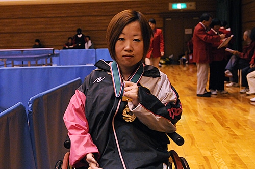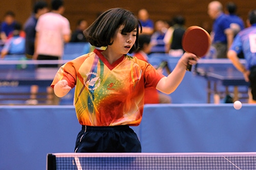 男子クラスS優勝の堀田 立位の部、女子クラス7は藤本慧子が優勝。ミスの少ない両ハンドプレーで準決勝、決勝の接戦を制して頂点をつかんだ。女子クラス8を制したのは深野めぐみ。長いリーチを生かした懐の深いプレーで昨年優勝の佐々木や昨年2位の柾谷を下した。女子クラス9は伊藤信子が優勝。フォアハンドドライブとスマッシュの切れ味の鋭さは同クラスで群を抜いていた。女子クラス10-Sは新鋭の青木佑季が制した。サウスポーからの鋭い両ハンドを武器に、決勝で強豪の網屋を下した試合は見事だった。