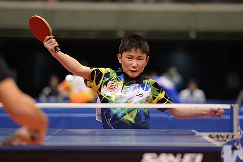 男子では今大会最年少出場の張本(仙台ジュニアクラブ)は、辻(白子高)と対戦。第1ゲームは辻がフォアハンド強打で攻めて優位に進め先制。しかし、第2ゲームは張本がバックハンドで先手を取って1対1とすると、巧みなサービスとチキータレシーブで張本が主導権を握り2対1とリード。第4ゲームでは打球点の早いカウンターで得点を挙げるなど多彩さも見せて3ゲームを連取し初戦を突破した。試合後の記者会見では「今回は相手のドライブをカウンターで反撃できた」と自らの成長を語ったほか、「憧れの選手は中国の樊振東。ラリーが強いところに引かれる」と、目指す卓球のスケールの大きさも垣間見せた。