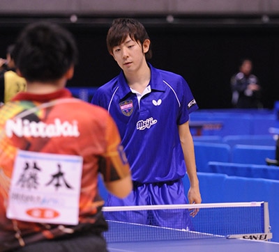 昨年2位の町(明治大)が藤本(日鉄住金物流)にストレートで敗れるという波乱が起きた。町は、試合後に「今朝ダブルスで負けて、気持ちを切り替えようとしたんですけど、練習しながらも不安が残っていました。試合は出足が結構良かったんですが、自分のサービスミスから流れが悪くなって、負けてしまいました。自分のプレーをできなかったのが悔しいです」と語った。