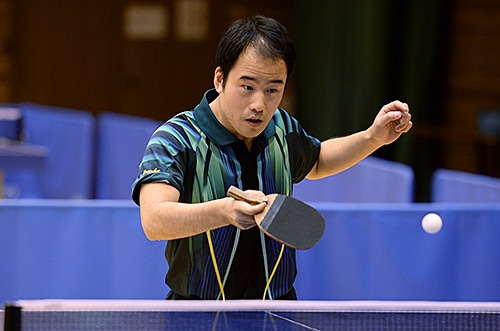 立位男子の部G2は安立剛(東京)が頂点に立った。異質ラバーを駆使した巧みなプレーで勝ち上がると、決勝でも変幻自在のプレーで勝利をつかんだ。