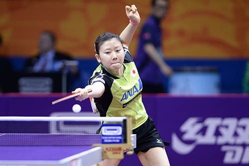 パリ大会初戦敗退の無念を晴らしたい福原は、序盤から打球点の早い両ハンドで攻め込み、気迫のプレーで相手に試合をさせず。ストレート勝ちで2回戦進出を決めた。