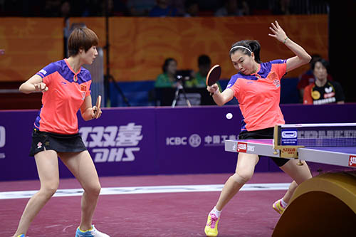 女子ダブルス3回戦で、日本の福原/若宮がシルバーアイゼン/ヴィンター(ドイツ)を破り、準々決勝へ駒を進めた。明日の準々決勝で丁寧/李暁霞の世界女王ペアに挑戦する。