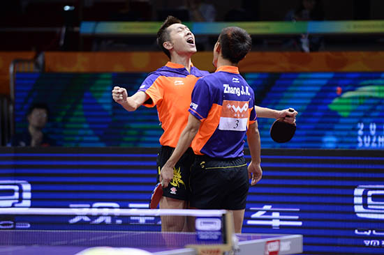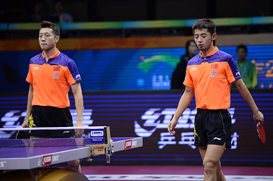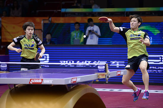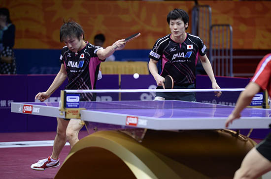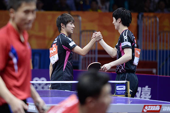 日本ペアの猛攻に追い詰められた許昕/張継科