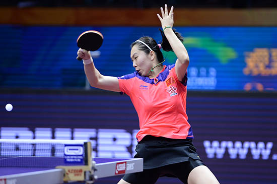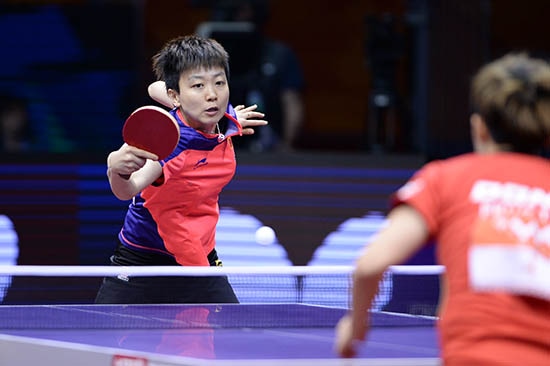 初優勝を狙う劉詩雯は朱雨玲を前陣両ハンドで圧倒