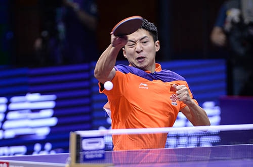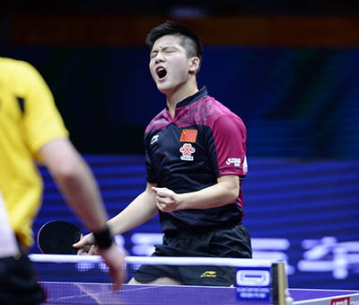 3回戦でモンテイロ(ポルトガル)との死闘をくぐり抜け、4回戦で香港の若手ウォン・チュンティンを下して勝ち上がってきたボルに対して、パリ大会では張継科に敗れたが、もはや優勝候補の一角としての貫禄すら身に付けてきた樊振東。