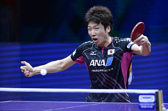 水谷は前陣でプレーしたが、張継科のボールに対応できず
