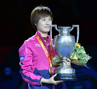 世界卓球2015蘇州大会7日目、女子シングルスの決勝は史上まれに見る混乱した試合となった。最終ゲームでプレー中に痛めた足を引きずりながらコートに再び立った丁寧が渾身のプレーで、調子を上げつつあった劉詩雯を破り、ロッテルダム大会に次ぐ2度目の優勝を飾った。