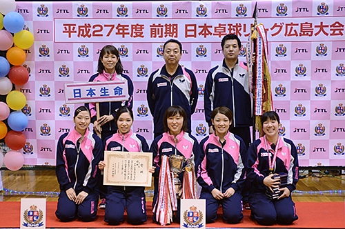 村上恭和監督は薄氷をふむ試合が続きながらも全勝優勝を決めたチームについて、「一つ一つの試合で苦しみましたが、優勝できてよかったです。最終戦の0対2で迎えたダブルスでは前田、森の新人2人が重圧のかかる場面でがんばってくれました。また、5番の田代は持てる力を発揮してカットを打ち破ってくれました。新たに選手が加わり、チーム編成が変わった中で優勝できてうれしいです」と今年1つ目のタイトル獲得を喜んだ。