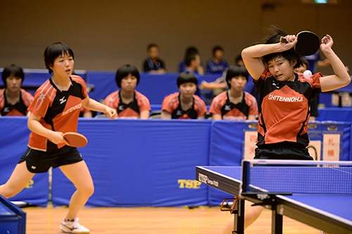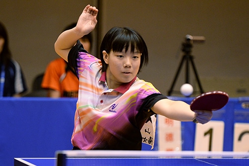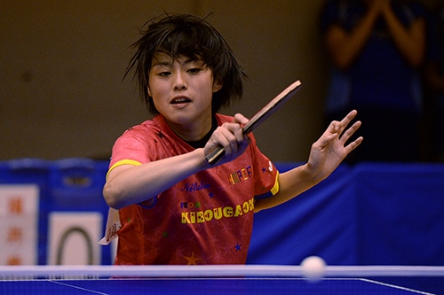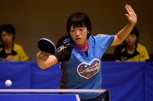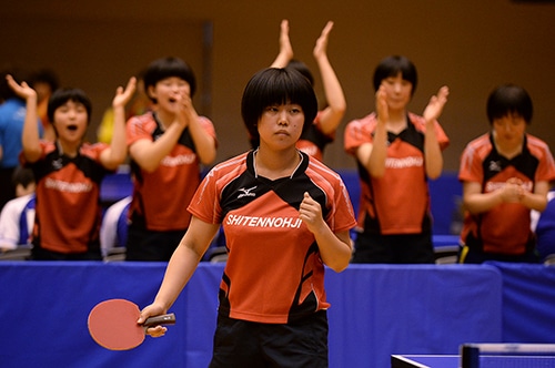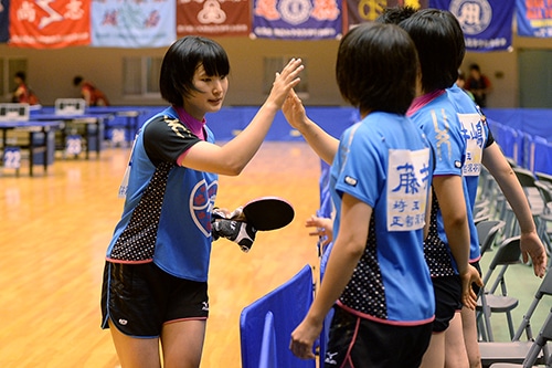 明誠との一戦ではここまで勝ち星がない田口が打球点の早い攻撃を生かした前陣プレーで古池を破ると、2番では牛嶋が巧みなカット技術で試合の主導権を握り、準決勝進出に王手をかけた。