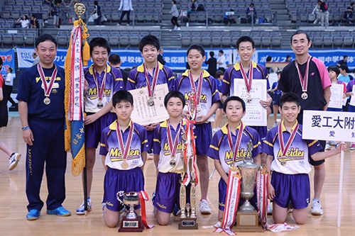 明豊の近藤はパワフルなプレーで勝ち星を重ねた男子団体は、愛工大附属(愛知)が優勝し、3連覇を果たした。田中を筆頭に実力のある選手をそろえ、穴がどこにもないのが愛工大附属の強み。明徳義塾(高知)との準決勝以外は1点も落とさない完璧な内容で、優勝へと一気に駆け上がった。