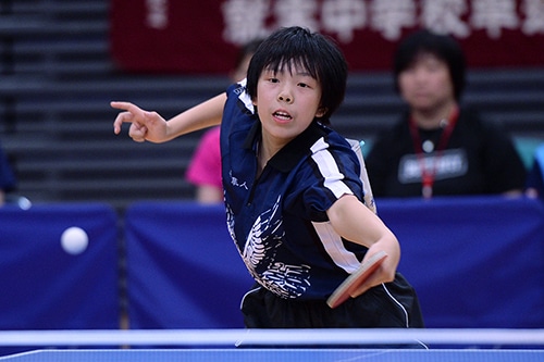 塩見と決勝を争ったのは出雲美空(曙川)。決勝では塩見の変幻自在な速攻にペースをつかめなかったが、表ソフトラバーでのバックハンドを軸に早田を下したプレーは素晴らしかった。