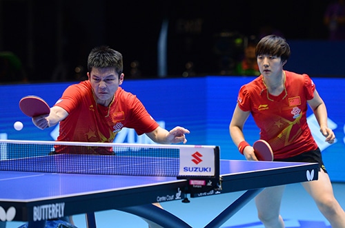 中国ペアは樊振東のチキータを中心に得点を重ねた