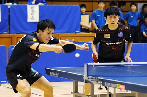 男子ダブルスは松平・上田(協和発酵キリン)が初優勝。決勝では張・高木和(東京アート)にゲームカウント2対0から2対2に追いつかれる嫌な展開になったが、最終ゲームに思い切ったチキータレシーブを連発してスタートダッシュを決め、優勝を勝ち取った。