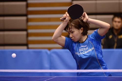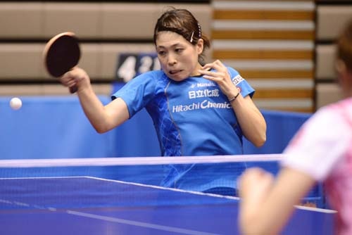 決勝のトップはカット攻略に定評のある森薗が守備力の高い根本のカットを打ち抜いて日立化成が先制。続く松澤は加藤杏華との激しい高速ラリー戦にゲームオール9対11で破れ1対1に。