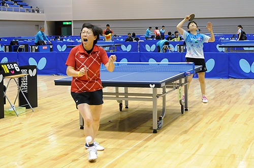 女子フィフティは稲川佳代(COLOR)が苦しみながらも3連覇を決めた。ピンチに見舞われる場面もあったが、高い集中力を維持して決勝進出を果たした。決勝は大嶋由美(八尾ひまわり)のカットと攻撃を織り交ぜたプレーが光り、最終ゲームまでもつれたが、第5ゲームは稲川が好機でスマッシュを決めて勝利。激闘に終止符を打った。